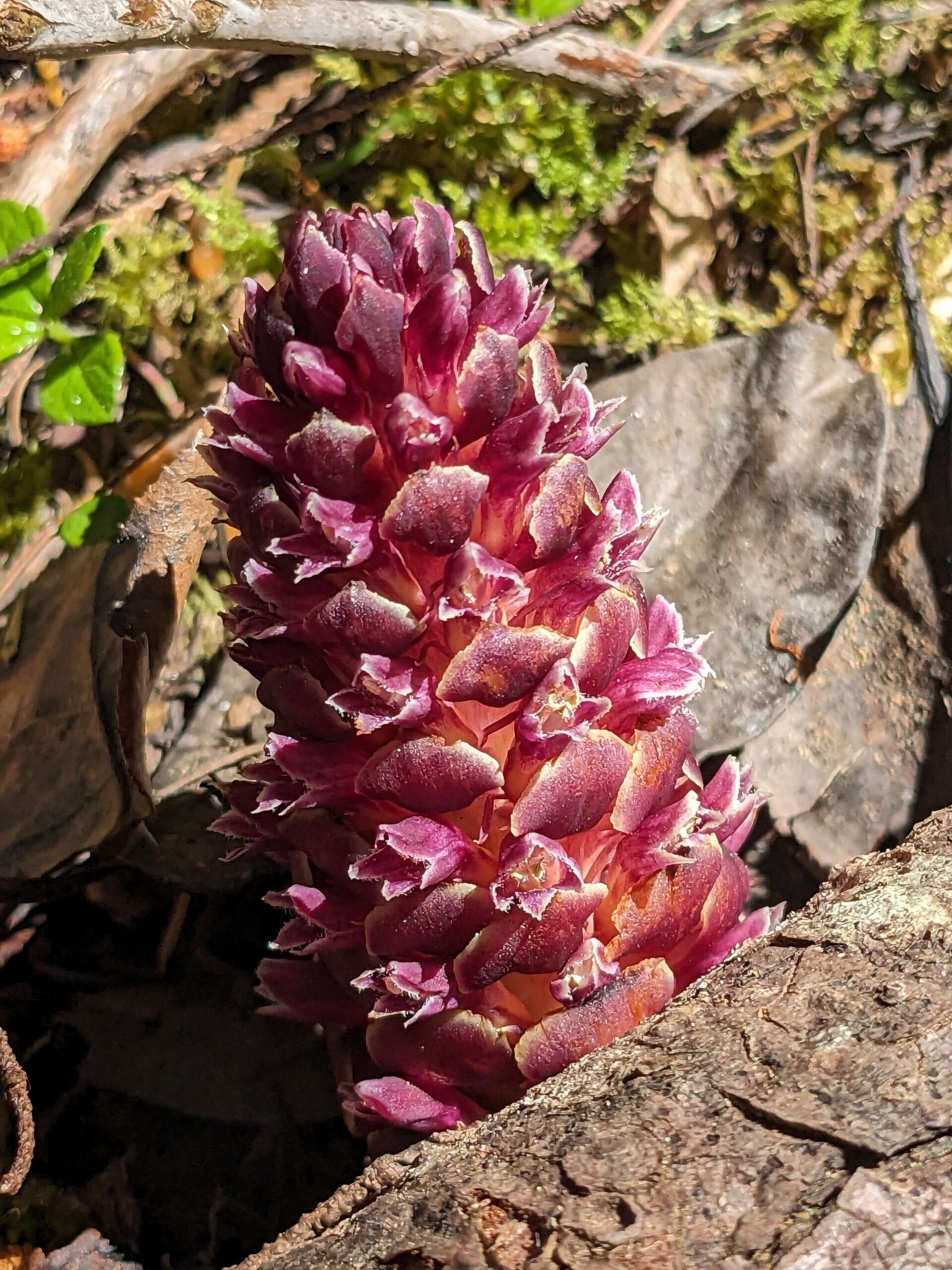 A small group of nature enthusiasts led by Julie Deveraux visited Lotus Pinnatus Park today to marvel at the floral diversity and enjoy the sunny weather. The highlight was several specimens of the parasitic ground cone, as well as spotted coral root, violets, one-flower broom rape and many many more.