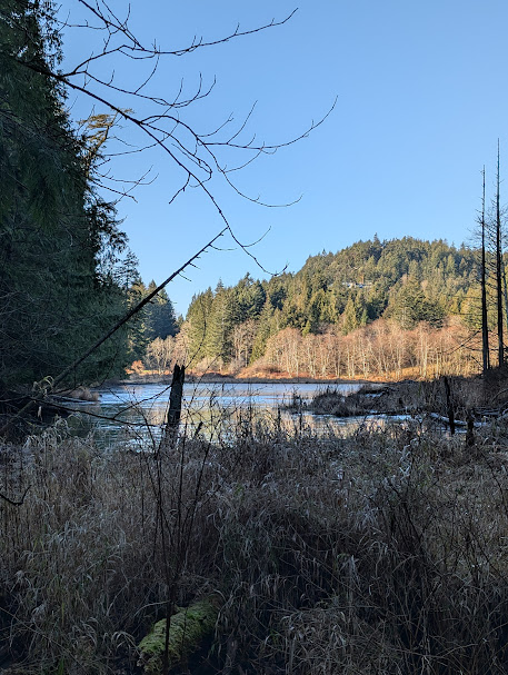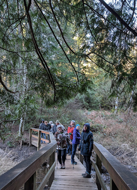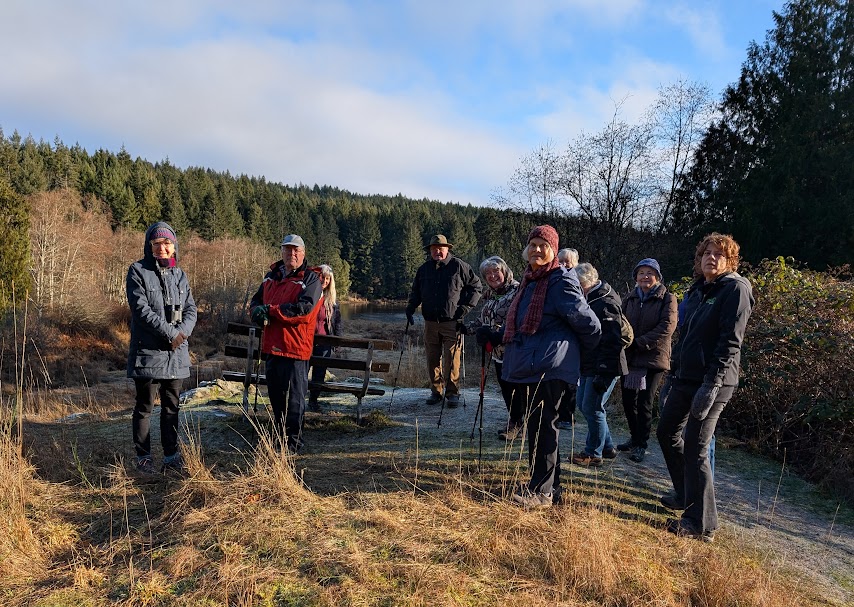Thirteen Nature Nanaimo members had a wonderful Ramble in Linley Valley January 28th – led by Judy Wickland – Thank you for sharing your knowledge of the area Judy. The weather was perfect with some ice on Cottle Lake and a frost providing lots of viewings of hair ice. It is a lovely location in North Nanaimo with lots to explore and a great new set of boardwalks that create a nice loop around Cottle Lake. Photos taken by Chris Streiter.