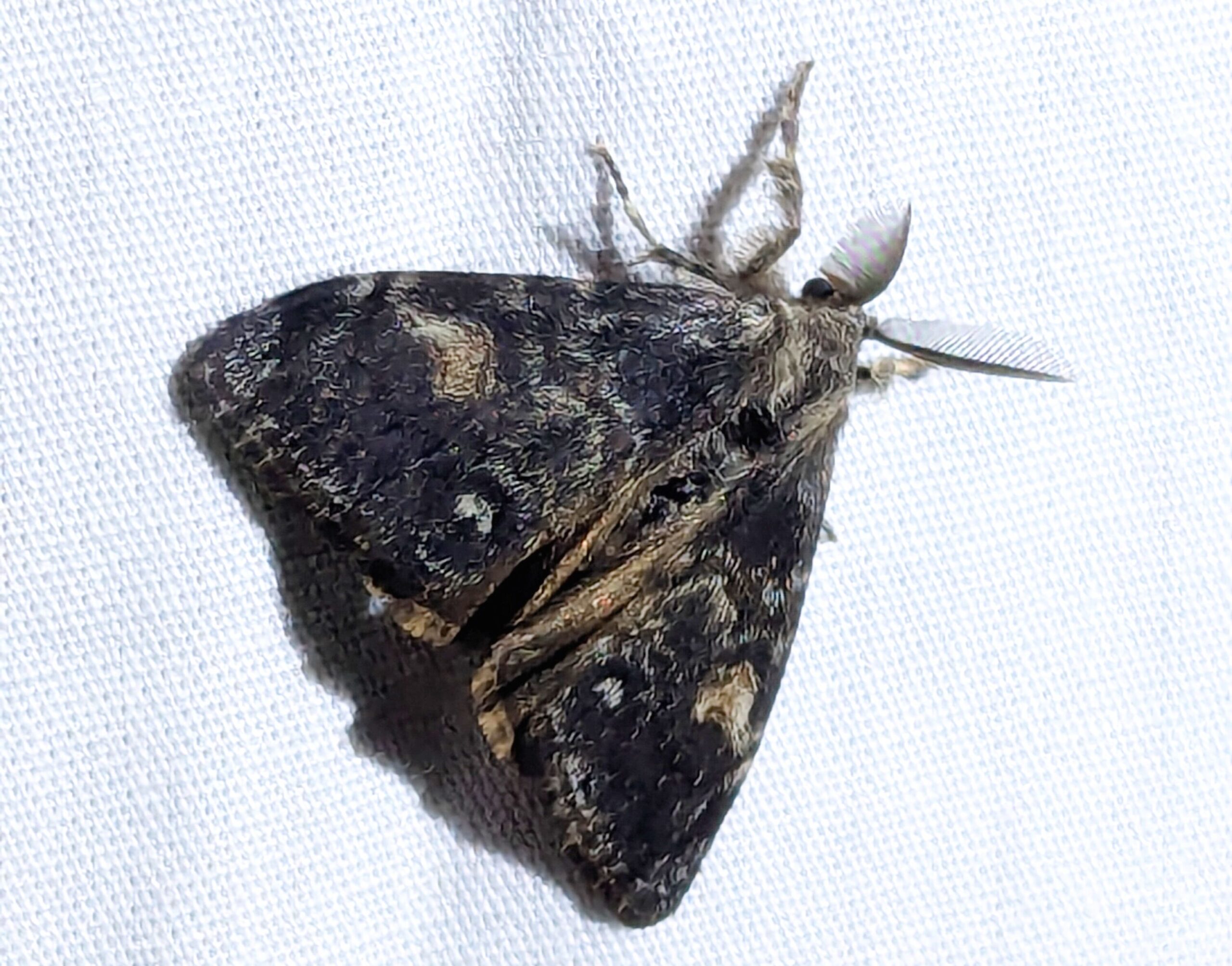 Our “Creatures of the night” outing on September 9, 2025, attracted 8 Nature Nanaimo members willing to brave the dark and potential mosquitoes. Doug provided light sources and sheets to attract insects. The evening was moderately successful, although the bats were largely absent. Our lights attracted some insects, mostly what would be expected. Using iNaturalist the attached photos show some representatives of the Orders that showed up (Lepidoptera [moths], Diptera [flies], Trichoptera [Caddisflies], and Hymenoptera [wasps]).