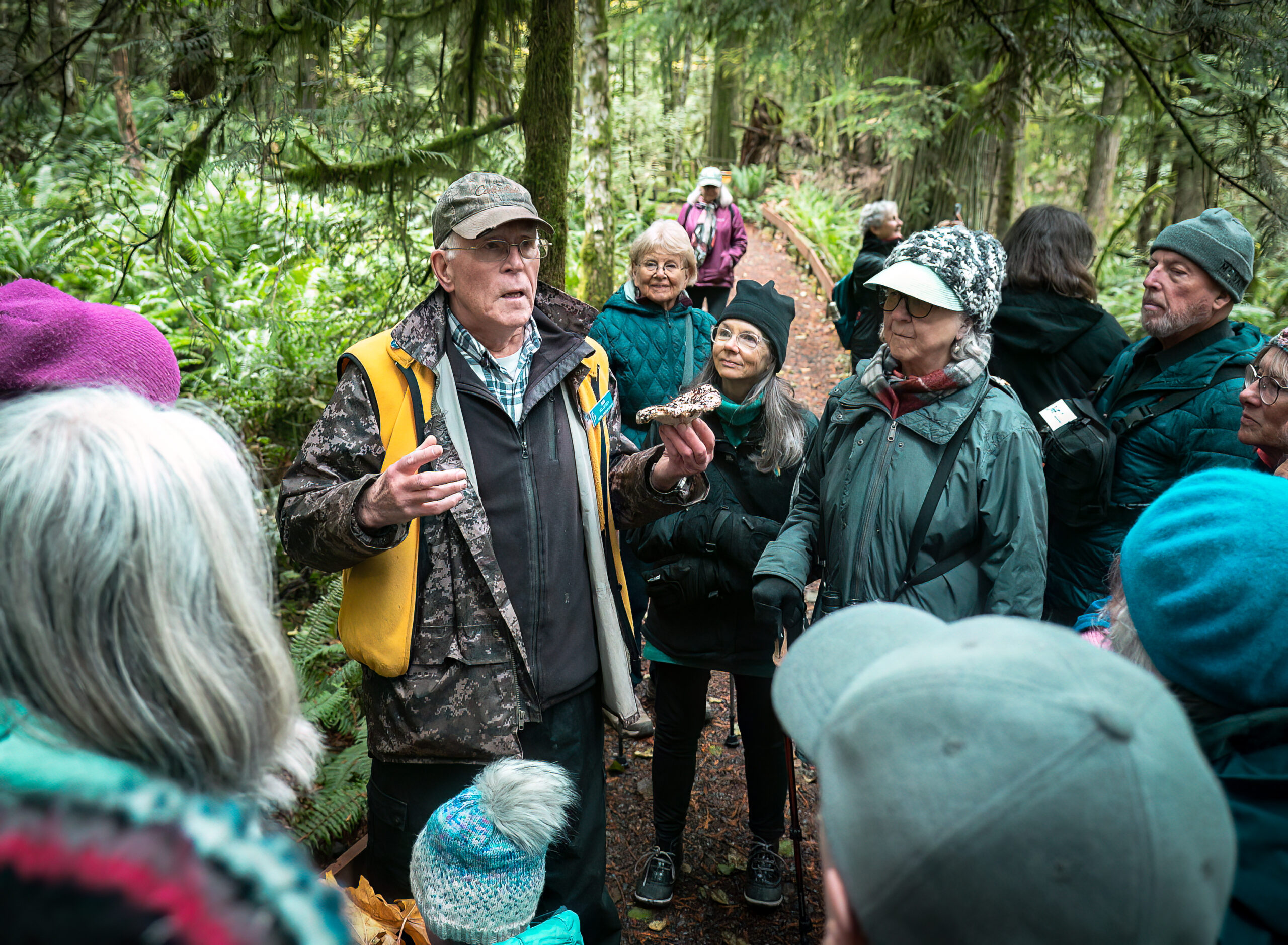 On November 14, I joined a group of over 25 members of Nature Nanaimo for a guided stroll through the beautiful trails of Morrell Nature Sanctuary to learn about mushrooms, lichen, nurse trees, “mother trees” and other symbiotic relationships that exist within a forest. Morrell Sanctuary is a preserve of nearly 300 acres of mature second-growth rain shadow forest in Nanaimo.